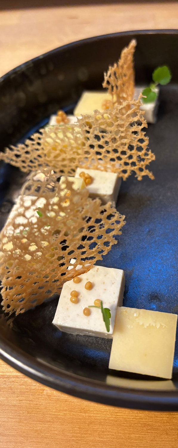 glace au romarin et ail noir, sablé au parmesan